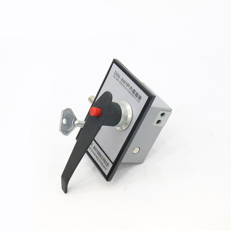 The DSN-BMY Indoor Electromagnetic Lock with Handle features an integrated manual operating lever, which distinguishes it from standard panel-only locks. The handle design allows for more intuitive physical control during the interlocking process. Constructed with high-strength materials, it ensures a long service life and consistent performance in industrial electrical environments.